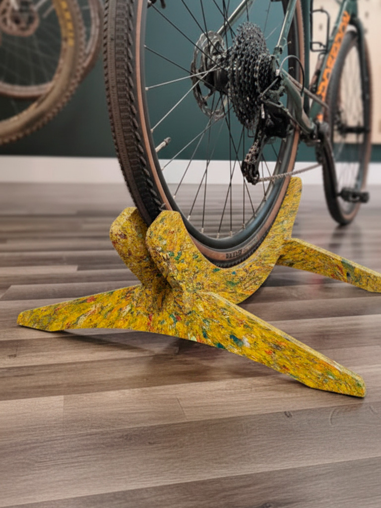 Apoya bicicletas, de plástico HDPE reutilizado.