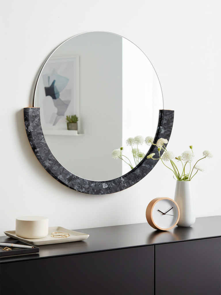 Espejo redondo para baño o pieza, de plástico HDPE reutilizado.