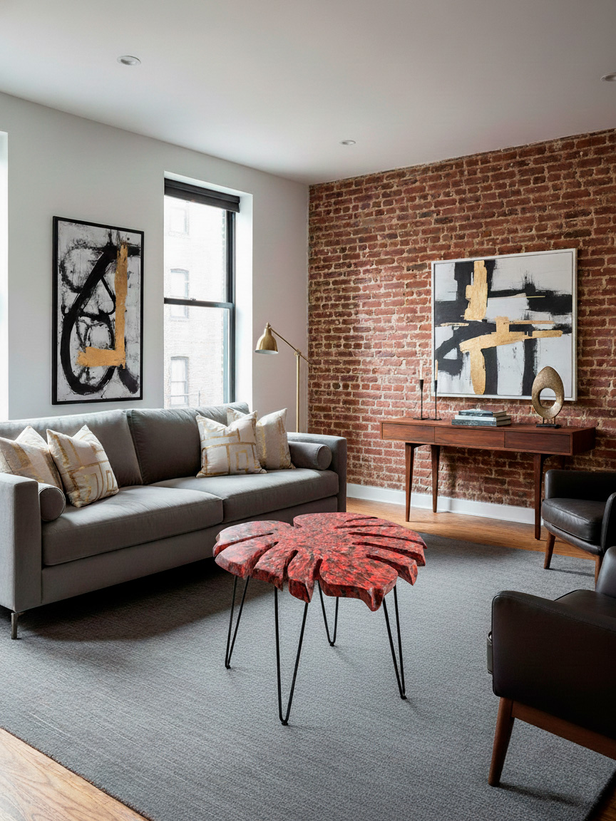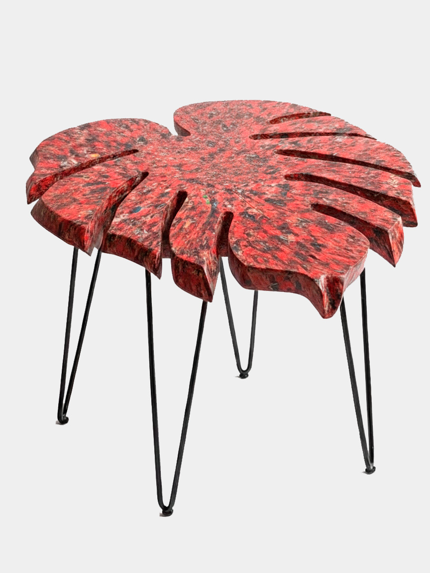 Mesa con forma de hoja de planta Monstera, de plástico HDPE reutilizado.